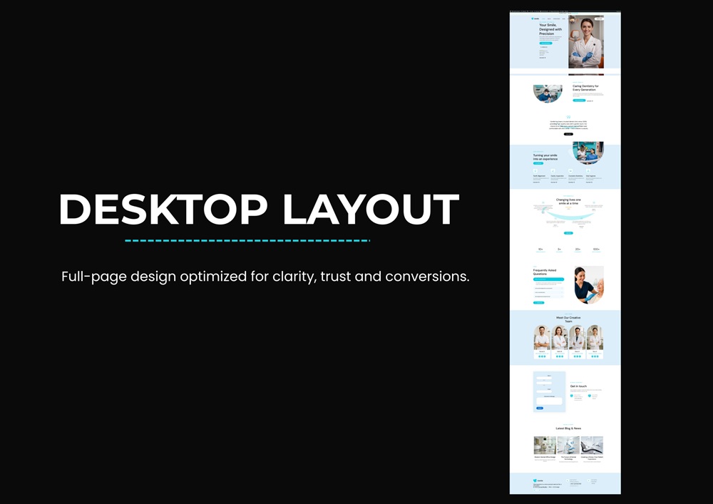 I created a modern one-page website Solution for a dental clinic, focused on patient trust, clarity, and increased appointment bookings.